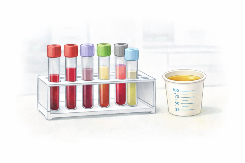 また、血液検査の血算の検体や尿検査の尿検体などは、検体の保存は望ましくなく、採取から4時間以内程度で検査することが推奨されています。生化学検査の検体も、血清検体は適切な管理のもとであれば保存も可能ですが、項目や検体の種類によっては保存不可の場合があります。